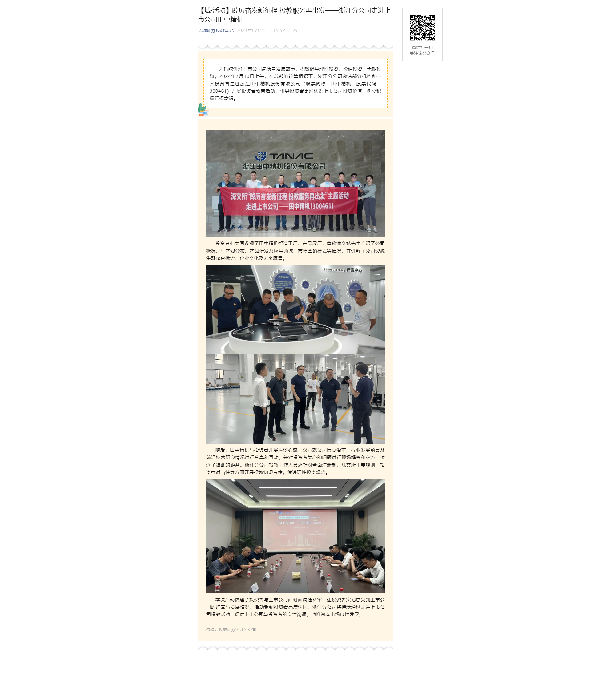 【城·活动】踔厉奋发新征程 投教服务再出发——浙江分公司走进上市公司田中精机